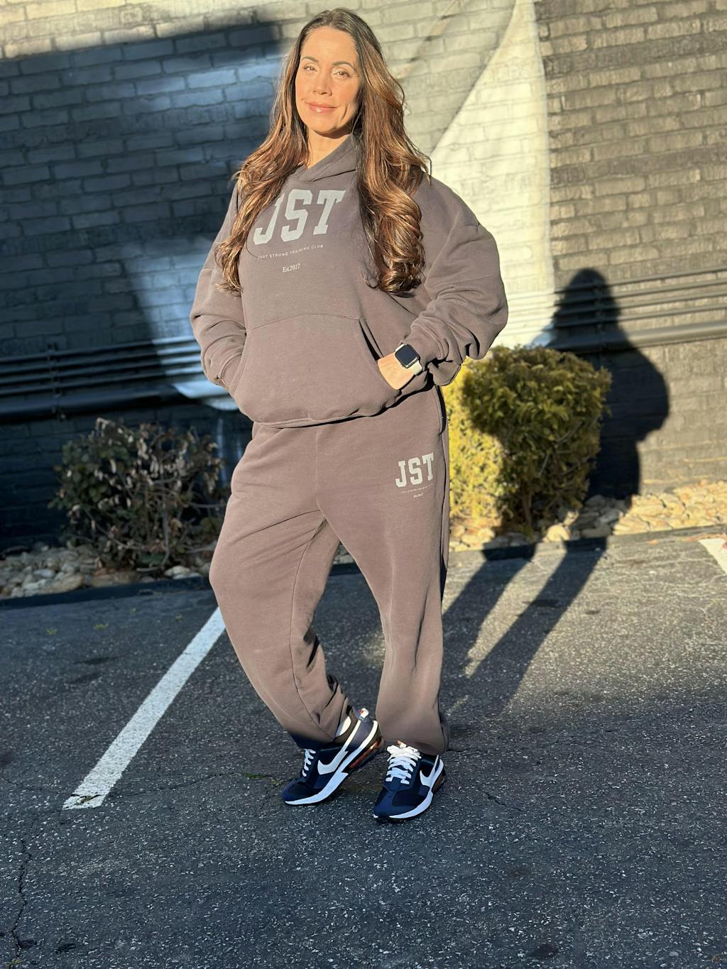 Meet the laid-back essential your wardrobe needs. Crafted from cotton blend brushed fabric, this cozy hoodie features a roomy pouch pocket and screen-printed graphics for effortless style. With its oversized fit and dropped shoulders, it's perfect for layering or throwing on post-gym. Pair with your favorite leggings or sweatpants for a relaxed, chic look.